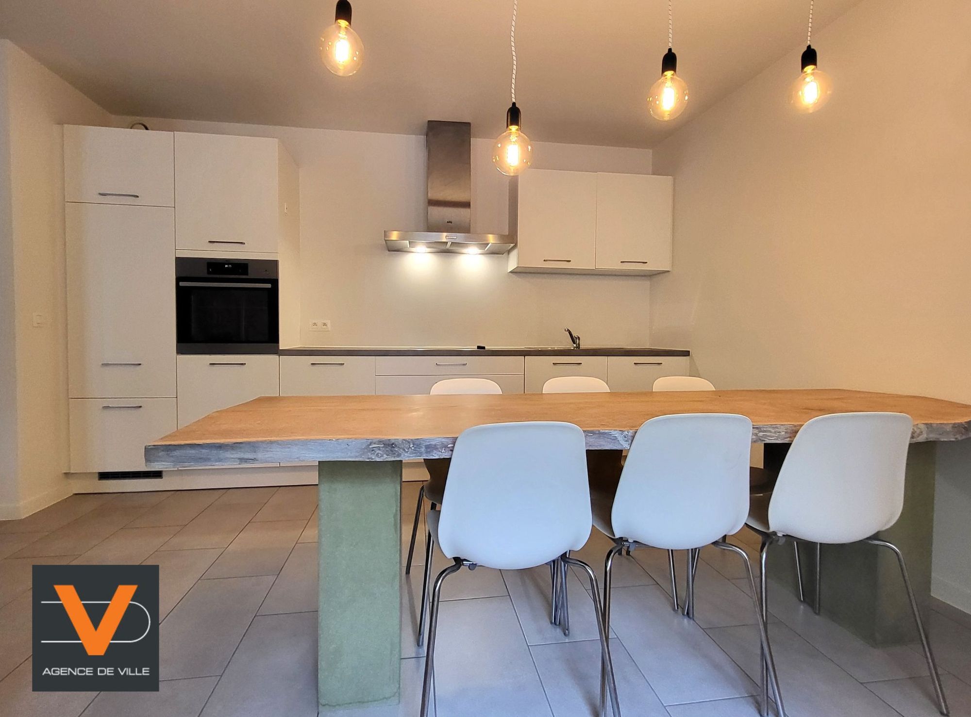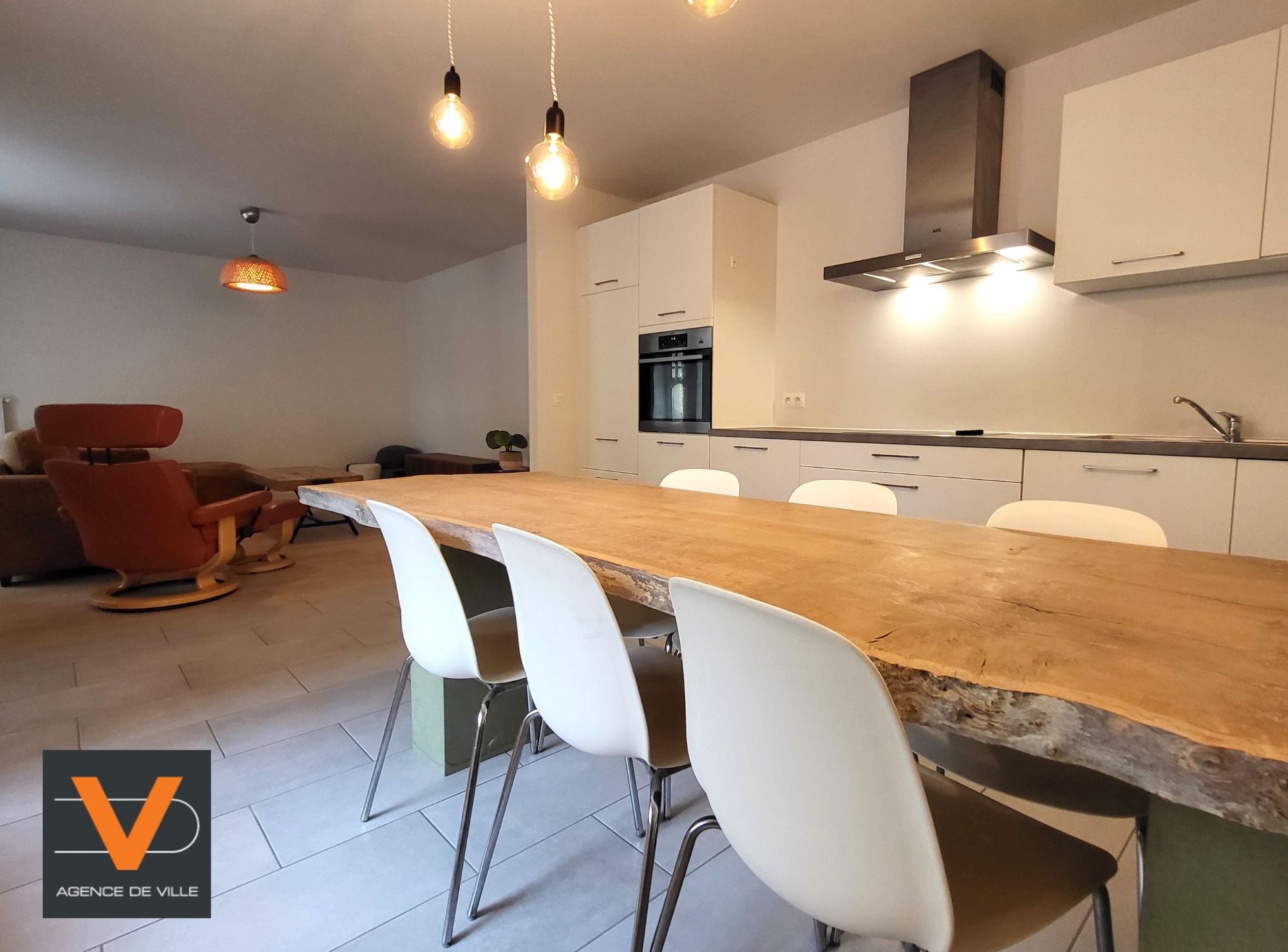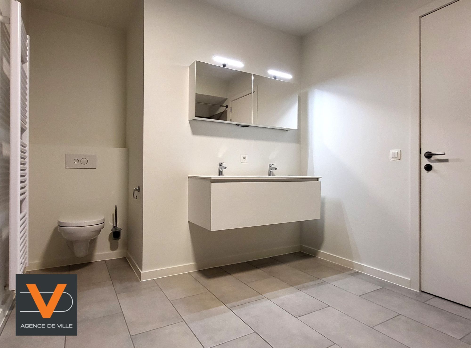 Prachtig energiezuinig appartement met 2 slaapkamers en zonnig terras, in het centrum van de Stad Gent. Gelegen op de 1ste verdieping met lift. Via de inkomhal met apart toilet komen we in de ruime leefruimte van 37m² met ingerichte open keuken met elektrisch kookfornuis, dampkap, heteluchtoven, koelkast met vriesvak en vaatwasmachine, toestellen van AEG. Badkamer 9m² met dubbel lavabomeubel, ligbad/douche en toilet. Berging 2m² voor wasmachine. Er zijn 2 slaapkamers van 19m² en 15m² met badkamer (lavabo en inloopdouche). Eiken parket en keramische vloeren. Berging in de kelder 3m². Gemeenschappelijke fietsenstalling. Super isolerende beglazing. Centrale verwarming op aardgas met hoge rendementsketel Vaillant. Ventilatiesysteem. Zeer energiezuinig appartement. Kosten 150€/maand. Een echte aanrader! Gelegen in het centrum van Gent. Wenst u een bezoekje bel 0488.85.81.84