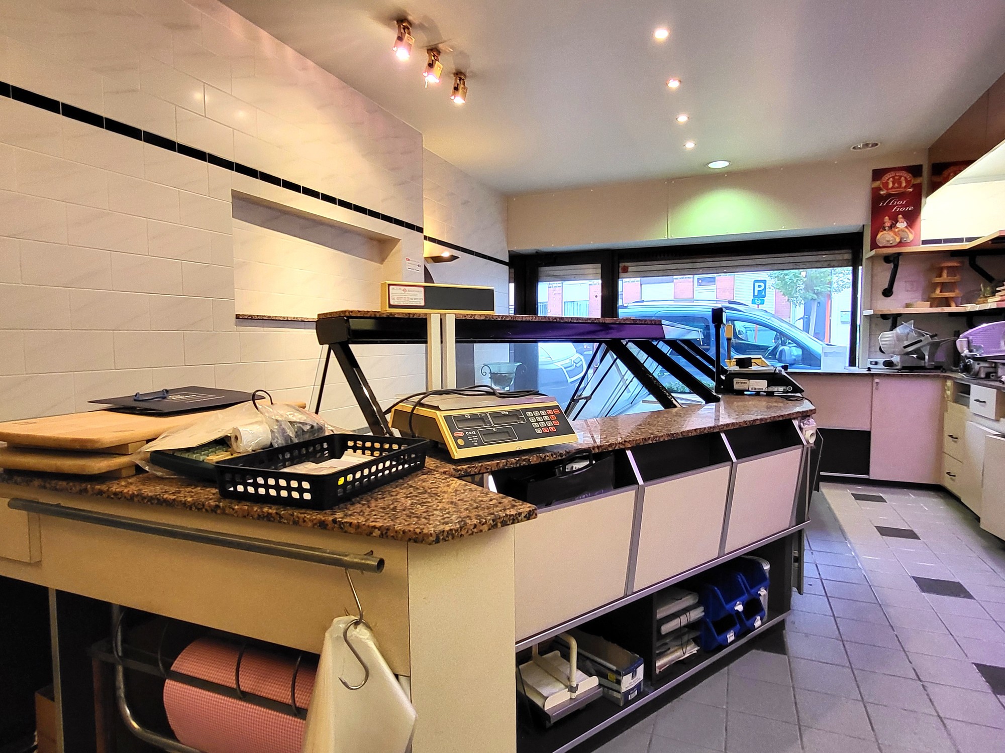 Het gelijkvloers deed jarenlang dienst als beenhouwerij en beschikt over een brede gevel van 8,1 meter en een grote winkelruimte met aansluitend een ruime werk- en magazijnzone. Dankzij deze indeling zijn er tal van mogelijkheden voor andere activiteiten zoals atelier, praktijkruimte, bakkerij, winkel of werkplaats.