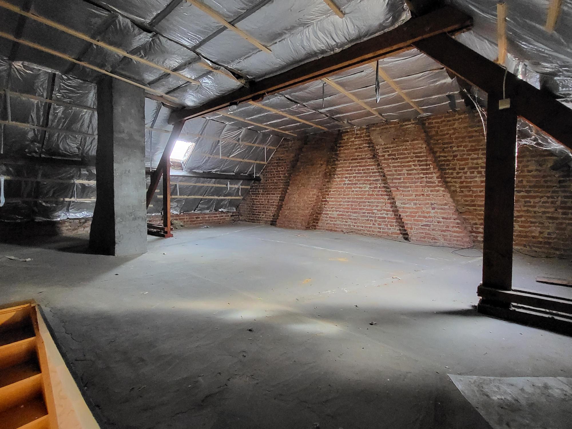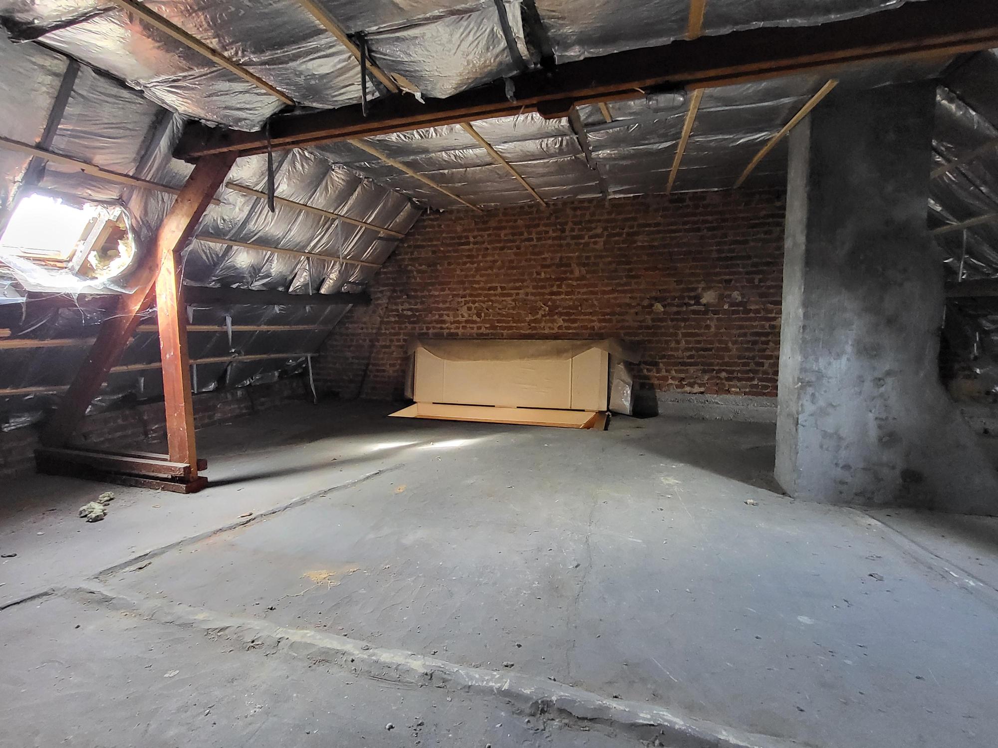 | Omschrijving: inrichtbare zolder met vaste trap, 2 ramen aanwezig, zadeldak met pannen, isolatie minerale wol |