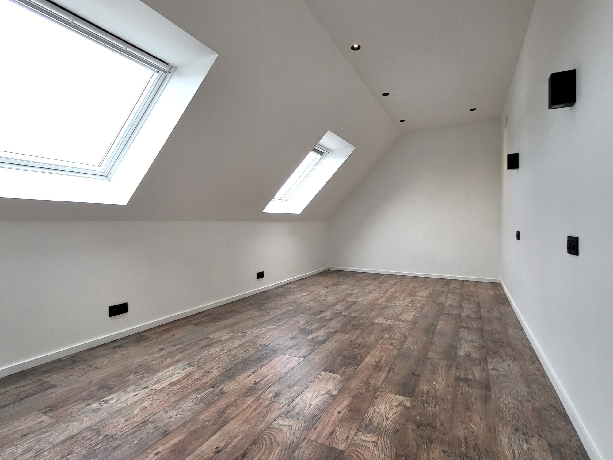 | Omschrijving: ingerichte zolder met vaste trap (zie slaapkamers 2de verdiep), ramen en elektriciteit aanwezig, zadeldak met stormpannen, onderdak, isolatie aanwezig, nieuw(e) dakgebinte en dakgoten |
