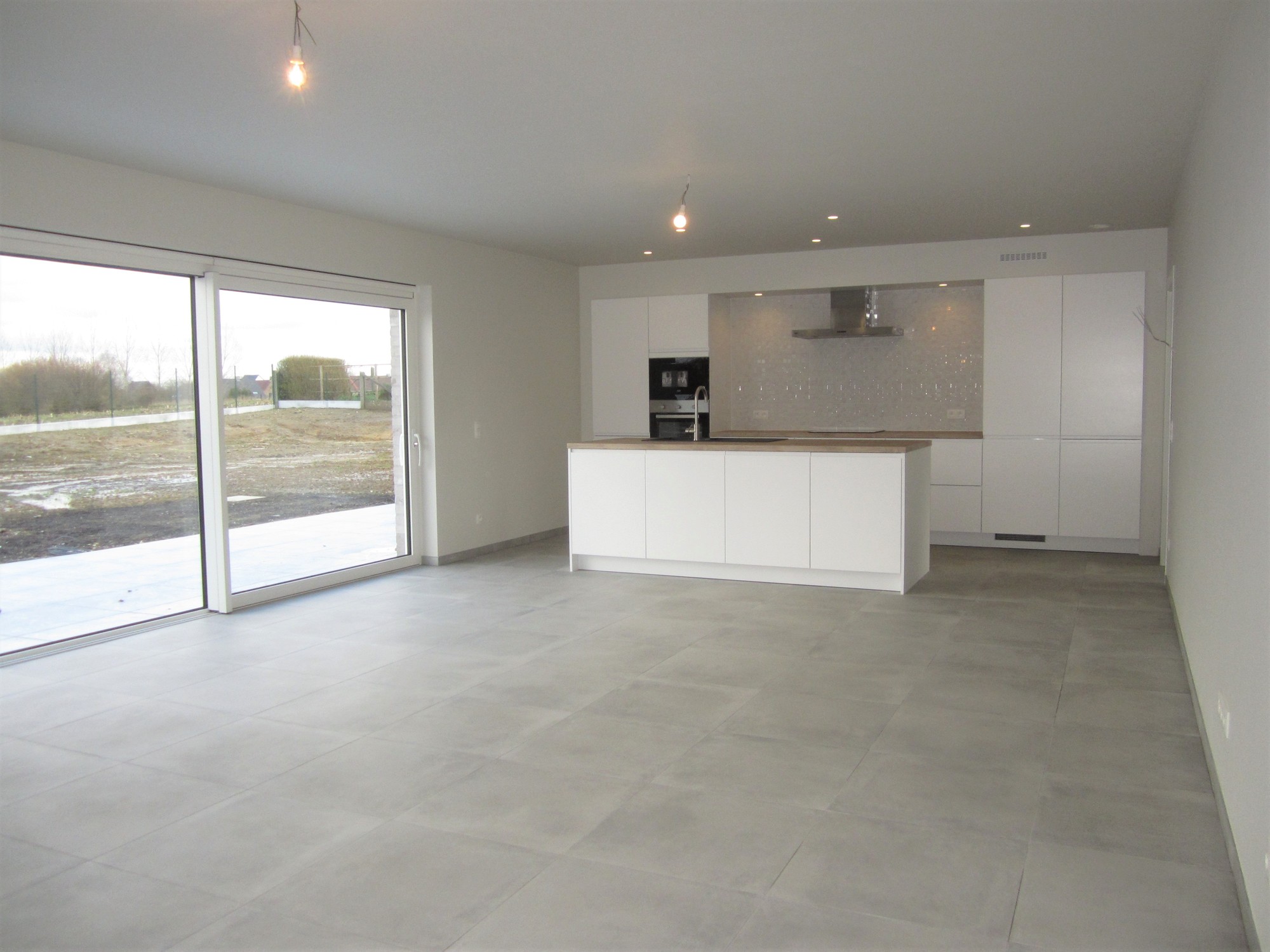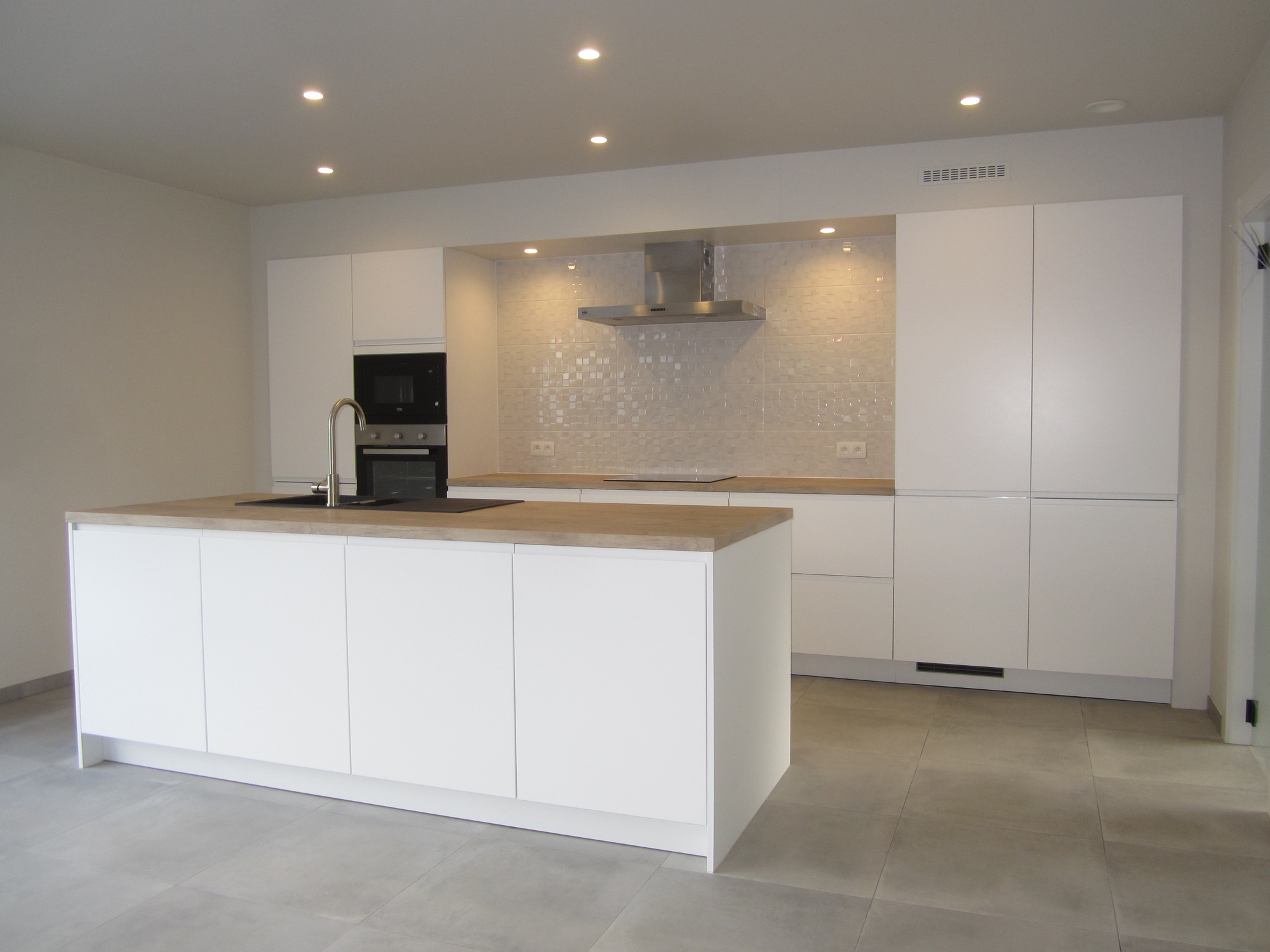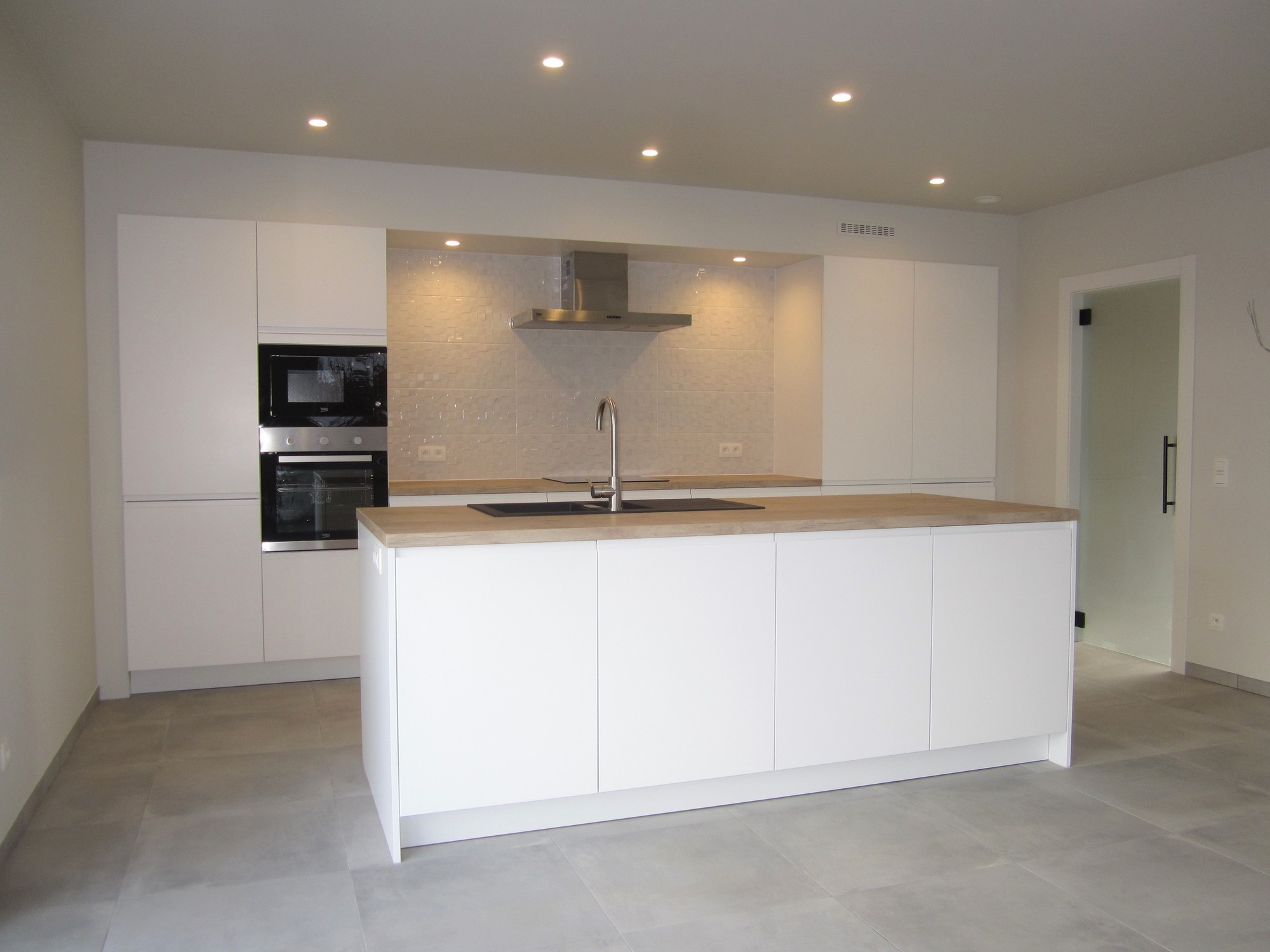 | Omschrijving: open keuken: inductiekookplaat, dampkap, heteluchtoven, microgolf, vaatwasmachine, koelkast, ker. vloer |