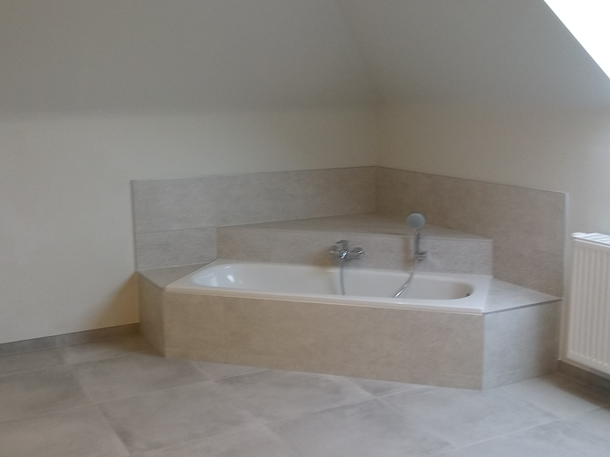 | Details: lavabomeubel, ligbad, inloopdouche, deels betegeld, ker. vloer |