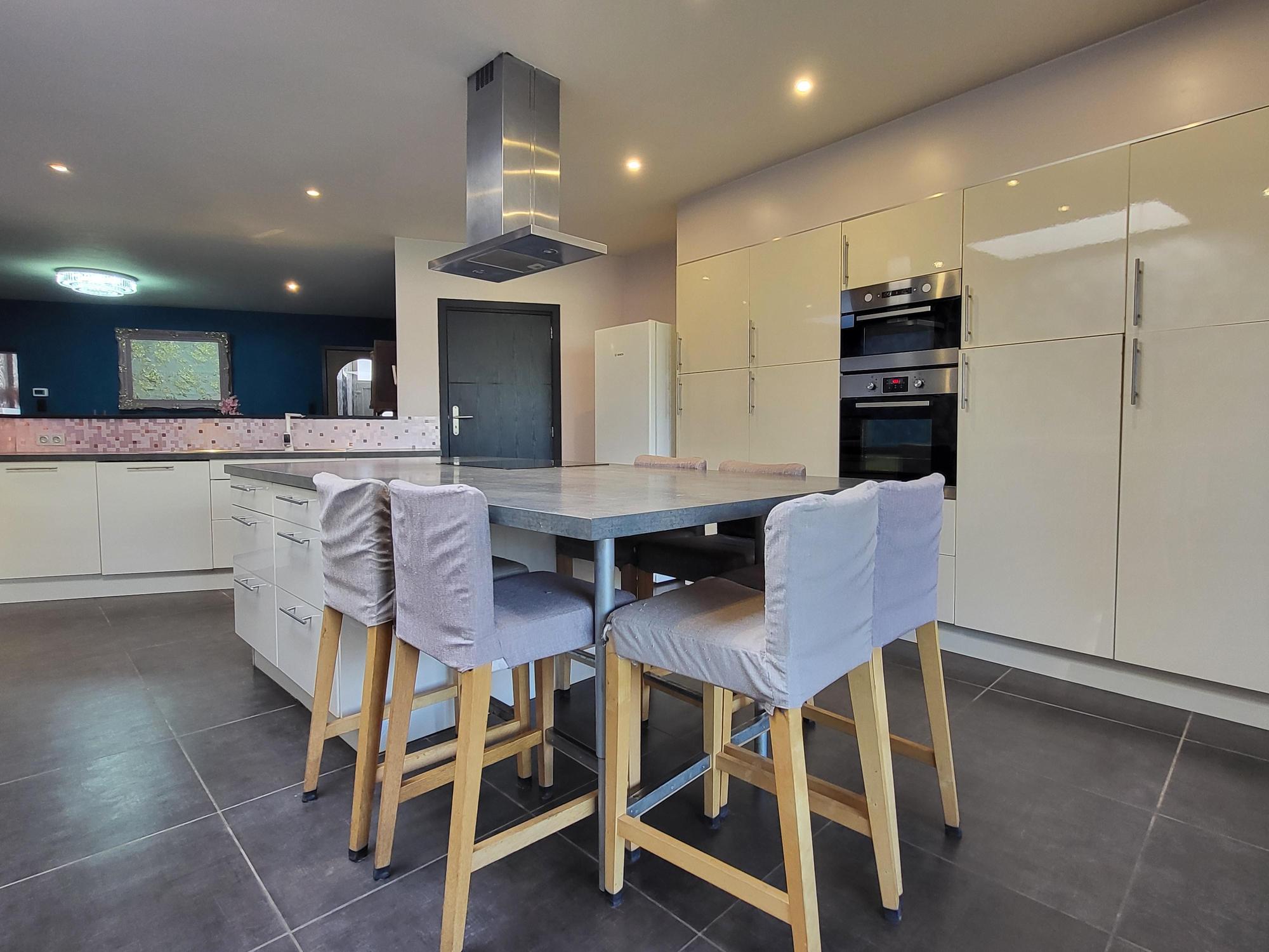 ZAT 14/3– 1STE BEZOEKDAG OP AFSPRAAK 0488.85.81.84 Ruime en karaktervolle gezinswoning op een perceel van 480 m² met zuidoostgerichte tuin, gelegen aan de centrumrand van Brakel. Deze charmante woning uit 1918 werd tussen 2012 en 2025 grondig gerenoveerd en combineert authentieke elementen met hedendaags comfort. Met een bewoonbare oppervlakte van 255 m² en een EPC van 204 kWh/m² (label C) biedt deze woning ruimte, licht en energiezuinigheid. U betreedt de woning via de inkomhal met houten trap. De lichtrijke woonkamer straalt gezelligheid uit en is voorzien van een inbouwcassette op aardgas en keramische vloer. Aansluitend bevindt zich de ruime, volledig uitgeruste keuken (2012) met inductiekookplaat, dampkap, heteluchtoven, microgolfoven en vaatwasmachine, een ideale plek voor wie graag kookt en samenkomt. De badkamer (2016) is uitgerust met dubbele lavabo, ligbad, douche en toilet. In totaal beschikt de woning over vier volwaardige slaapkamers, verdeeld over de eerste en tweede verdieping, afgewerkt met laminaat. De ingerichte zolder biedt bijkomende mogelijkheden en is voorzien van twee Velux-ramen, elektriciteit en voorbereidingen voor centrale verwarming. Verder zijn er twee toiletten, een ruime kelder, een praktische binnenberging en een garage met plaats voor één wagen, bereikbaar via de achterzijde (Eikkouterweg). Op technisch vlak is de woning uitstekend uitgerust met centrale verwarming op aardgas, een hoogrendementsketel (2023), aparte elektrische boiler, conforme elektriciteit (geldig tot 28/09/2047) en dubbele superisolerende beglazing. Het dak werd in 2025 volledig vernieuwd. Eerdere renovaties omvatten onder meer nieuwe leidingen en vloeren (2012), plaatsing van keuken en badkamer, vernieuwde PVC-ramen met hoogrendementsglas (2016) en vernieuwing van de elektriciteit (2022). De woning is gunstig gelegen op wandelafstand van winkels en school (1 km), met bushalte op 450 m en station op 5 km. Voor een afspraak op de kijkdag bel 0488.85.81.84